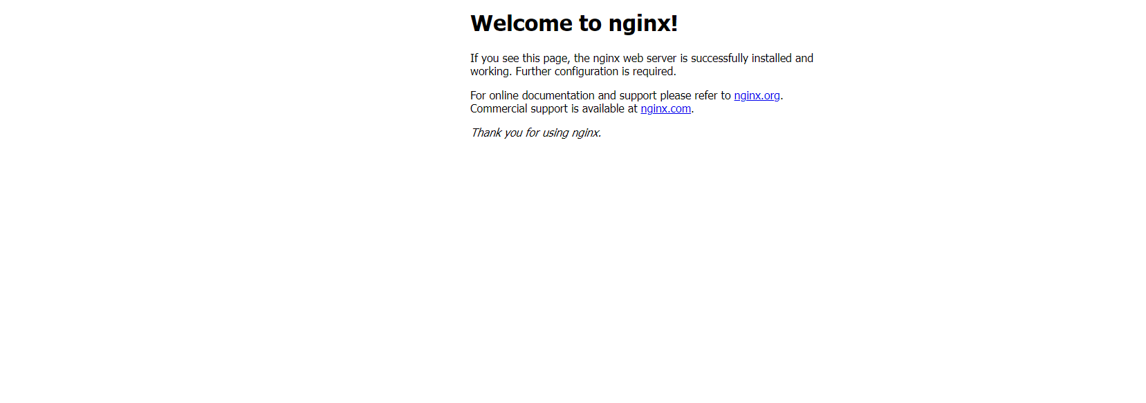 Если вы получили эту страницу, это означает, что вы успешно установили Nginx и включили HTTP-трафик для вашего веб-сервера.