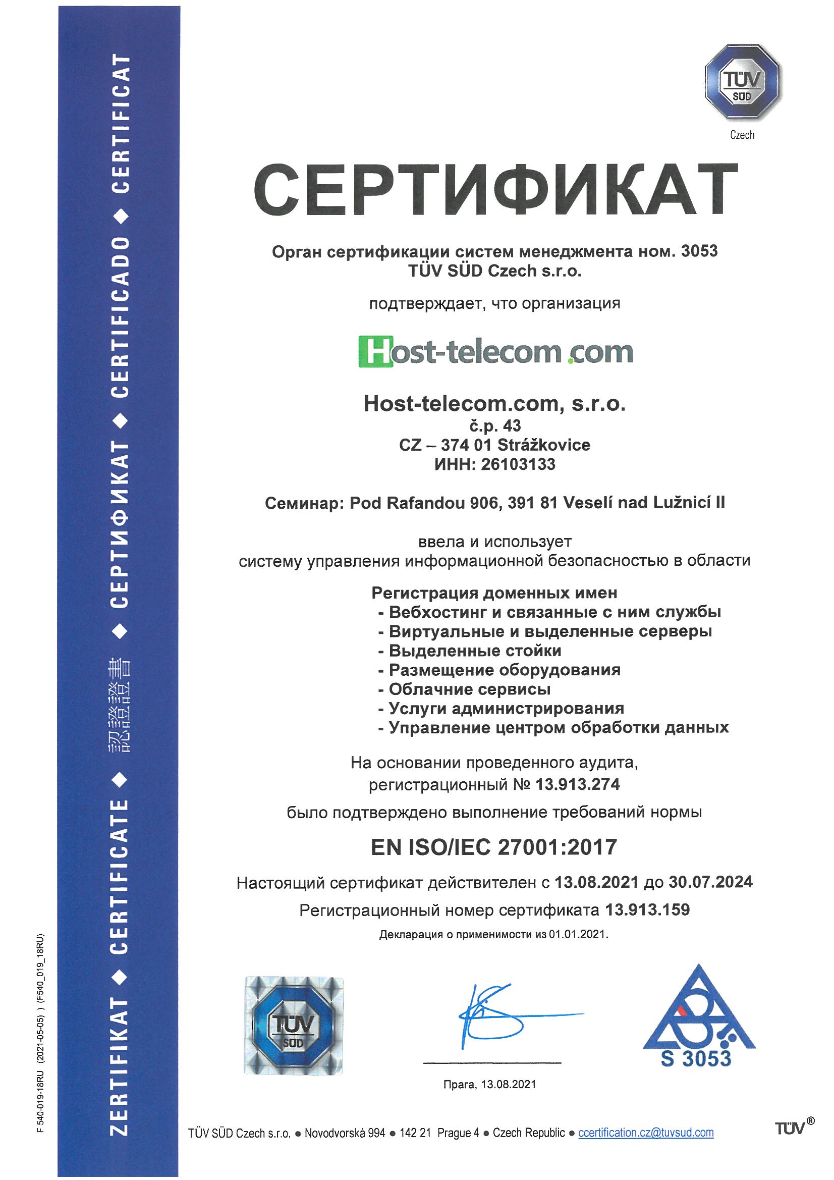 Сертификат EN ISO/IEC 27001:2017.