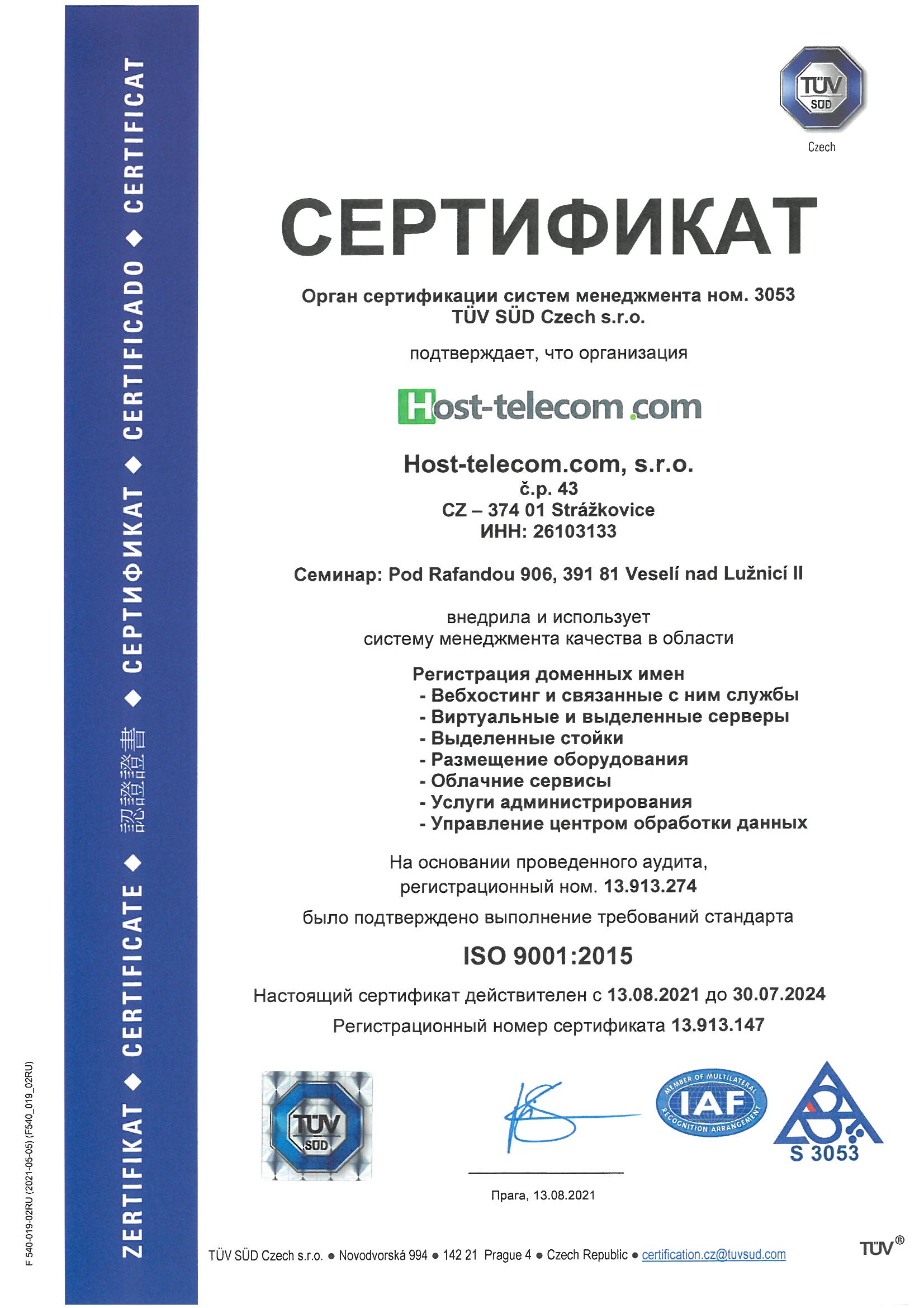Сертификат ISO 9001:2015.